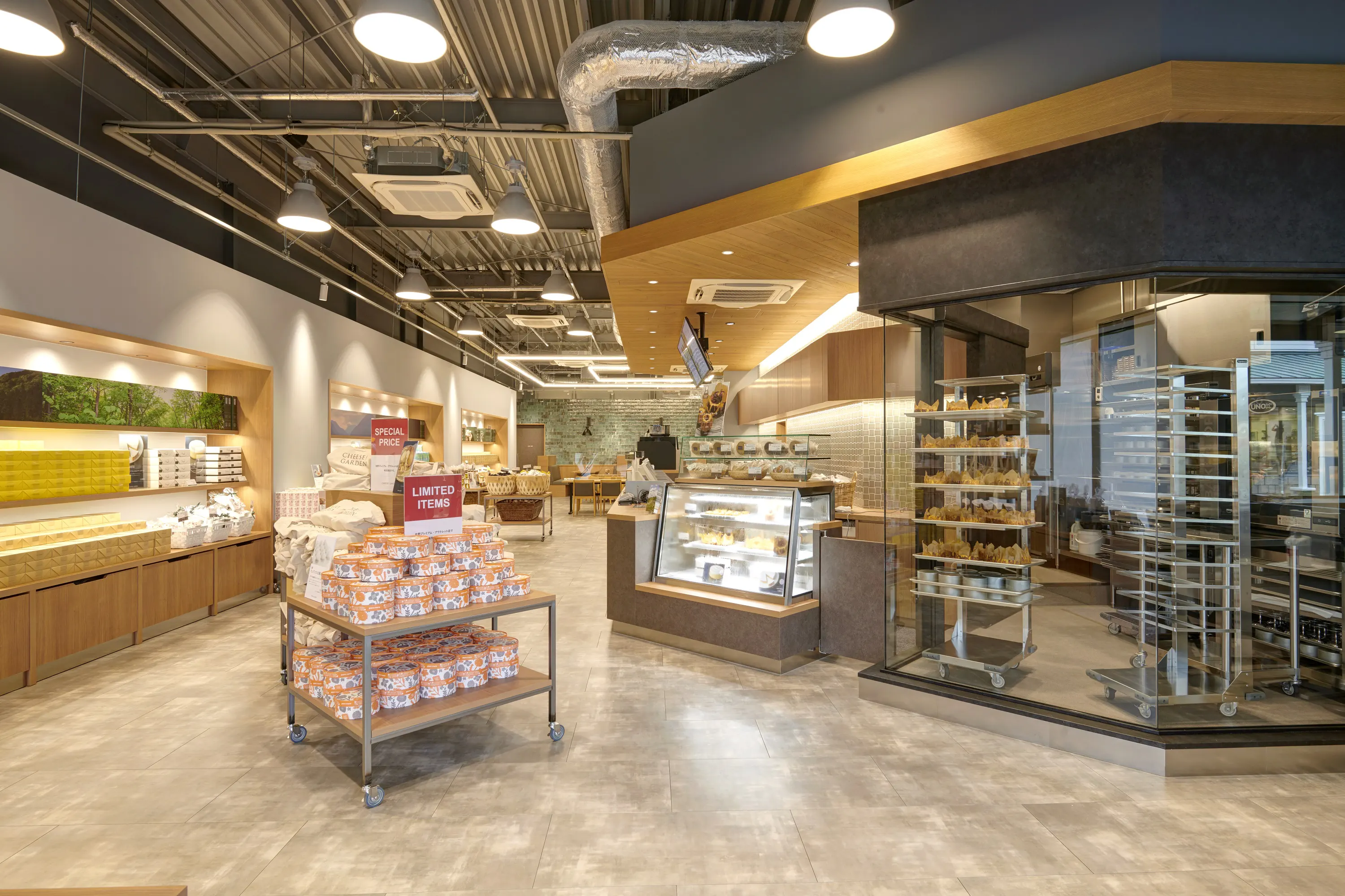 ガラスに囲まれた大きな窯では、毎日のようにバスクチーズケーキを焼き上げていて、ガラス越しではありますが実際に焼き上がりの瞬間もご覧いただけます。