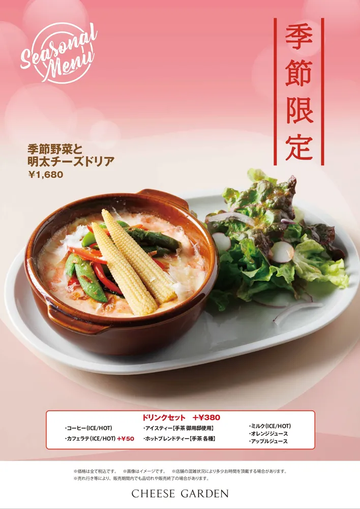 他にも、季節の野菜やパンをオリジナルチーズソースで味わう『チーズパンデュ』や、食べ応え抜群の『チーズドック』などチーズにこだわったフードもお楽しみいただけます。