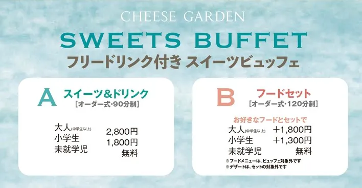 『御用邸チーズケーキ』をはじめとした10種類以上のスイーツが楽しめる『スイーツビュッフェ』をご提供しています。
