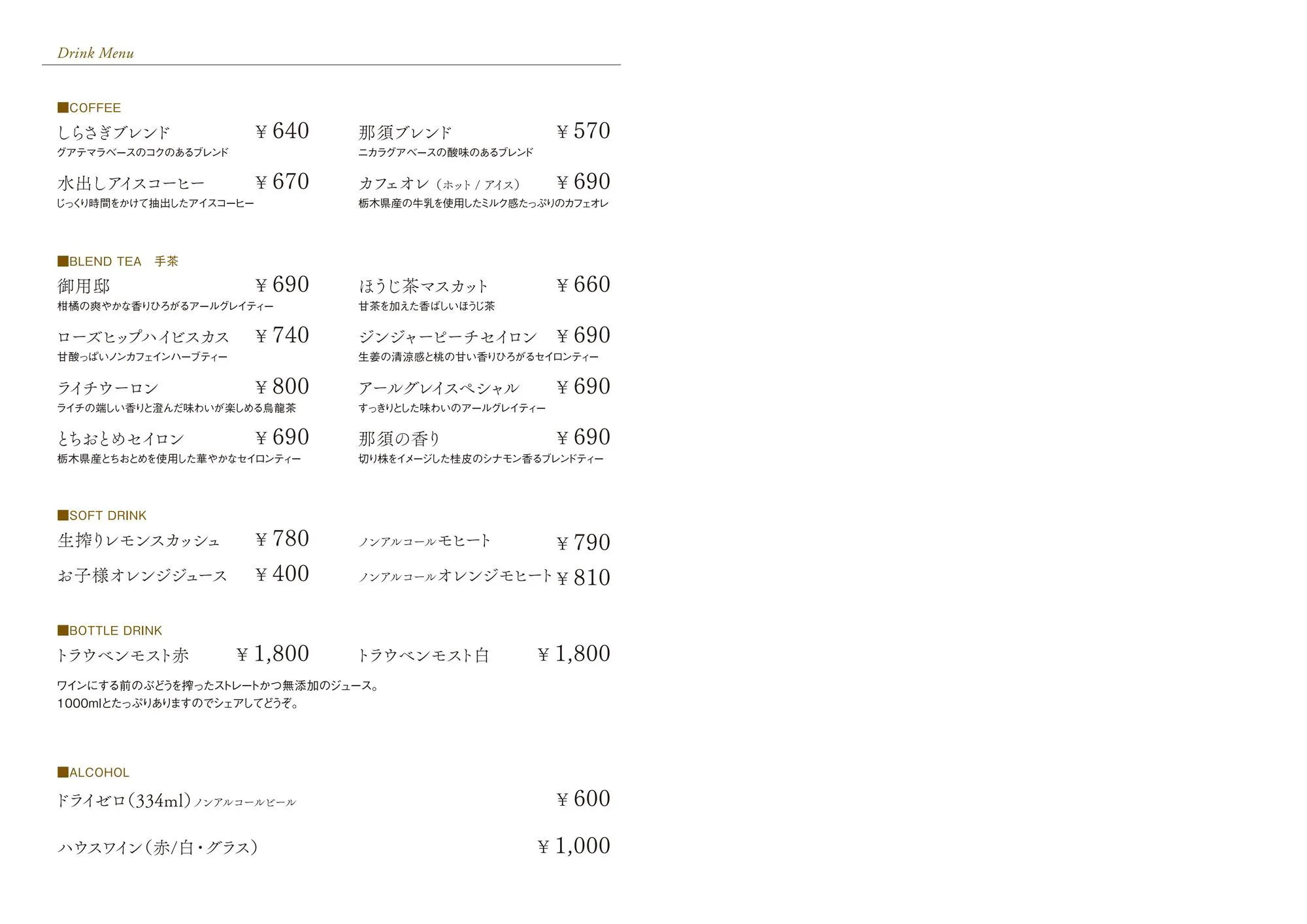 カフェメニュー